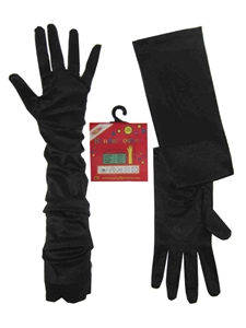 Handschoenen Satijn Stretch Zwart Luxe 48 cm. Maat XS