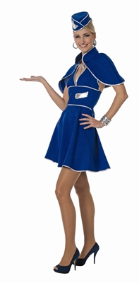 Stewardess Blauw. 2 Delig. Jurkje + Kap. Verkrijgbaar in diverse maten.
